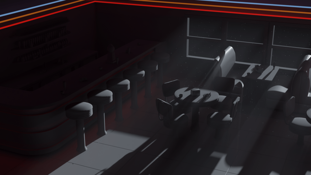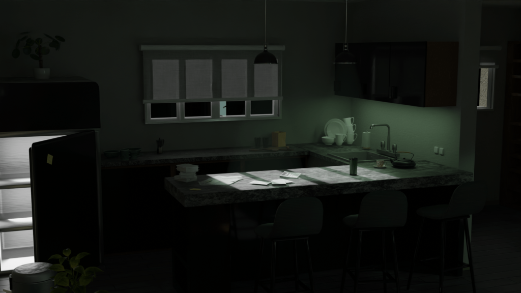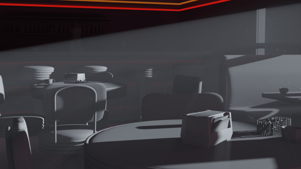 This assignment also allowed me to experiment with different lighting designs and explore how various colors interacted aesthetically. I learned how to evoke specific moods and atmospheres, tailoring the lighting to enhance the narrative and emotional tone of each space.