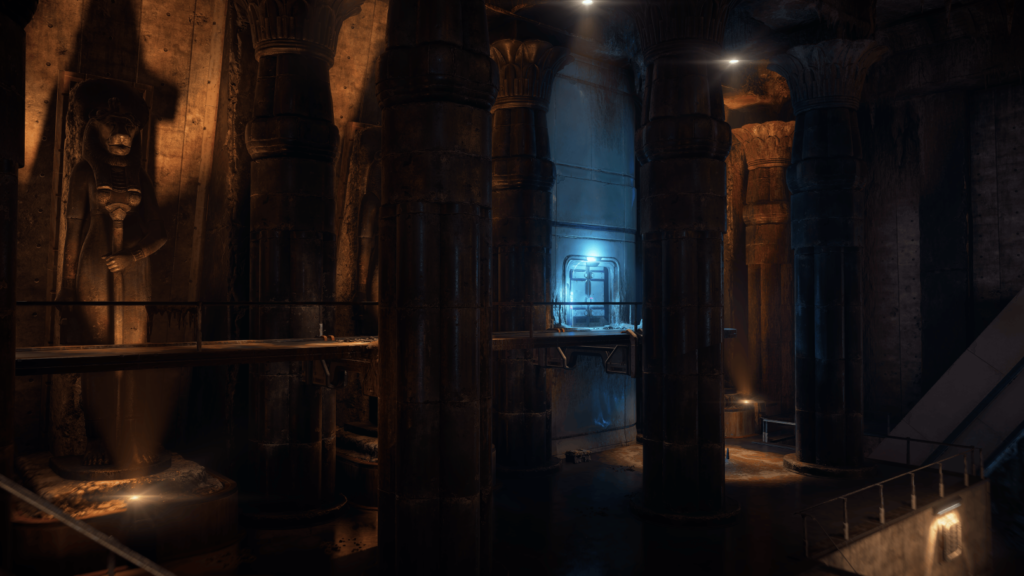 For my second assignment, I worked on the level Thebes, which had a dramatically different look and feel compared to my first project. This level featured three distinct visual styles: the golden Egyptian aesthetic, the grimy basement vibe, and the sterile hospital look. Each room had its own unique color palette, and I enjoyed experimenting with how the transitions between these styles could be made while maintaining visual consistency.